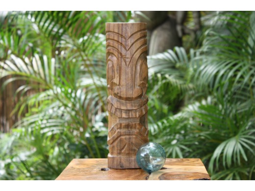 This beautiful BIG ISLAND Tiki totem- also known as the lucky / sun-rise totem - was hand carved and hand waxed by an experienced artist with great attention to details. This is a beautiful Tiki, made out of premium, solid Monkey Pod Wood.