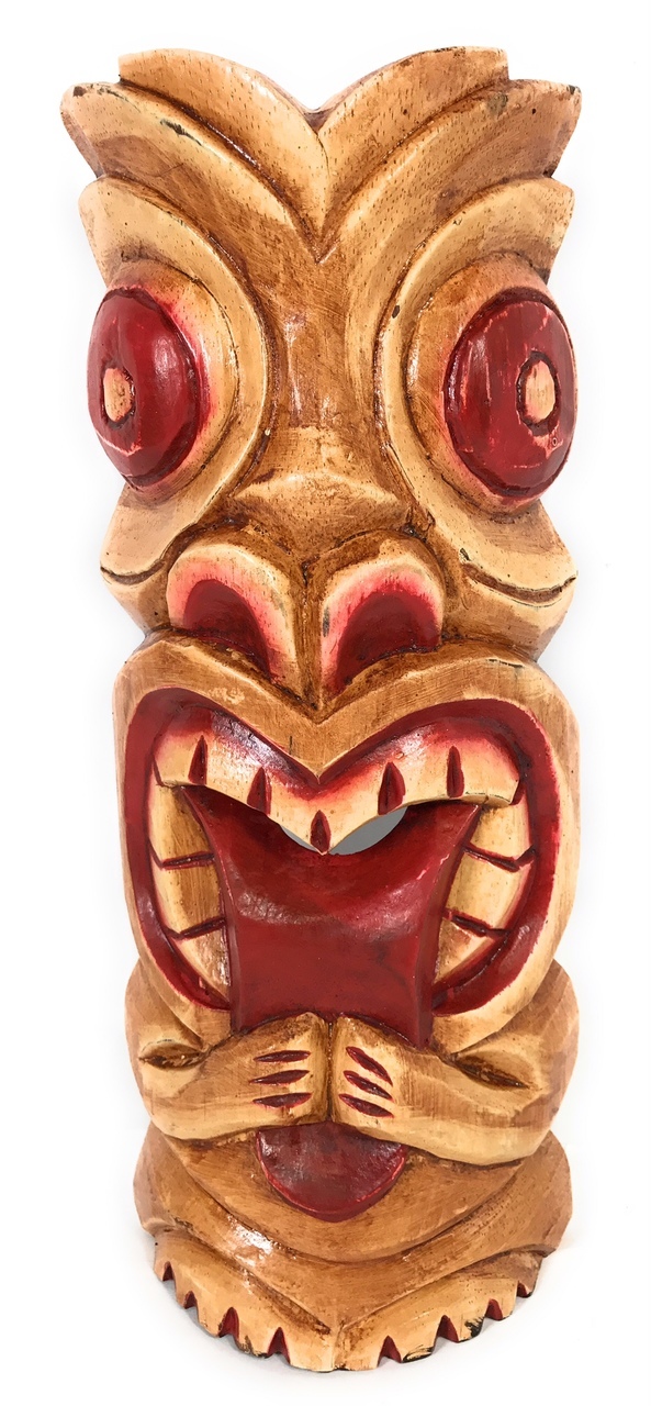 Here is a hand carved Tiki mask with a beautiful light brown finish. This Big Kahuna mask - Tiki of strength and love was hand carved with great attention to details. Comes ready to hang.