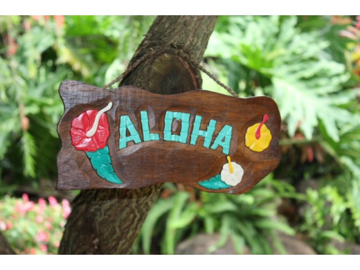 This is a hand made vintage looking sign with the wording ALOHA and featuring some beautiful hibiscus flowers. The sign has been hand carved and hand painted on driftwood.