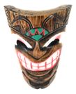 This SMILEY Happy Tiki Idol tribal mask was carefully hand crafted and painted by an experienced carver. It has a beautiful burnt, antique finish. Also note the intricate carved detail of the wood and attention to color on the mask.