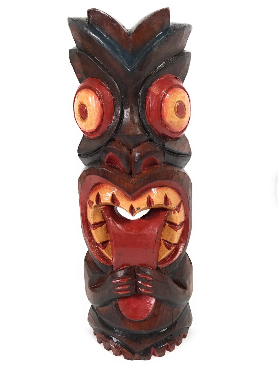 Here is a hand carved Tiki mask with a beautiful finish. This Big Kahuna mask - Tiki of Money was hand carved with great attention to details (ready to hang!).