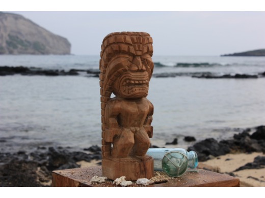 This is a vintage style Tiki made of Acacia KOA WOOD... Not too many Tikis are made of this wood because of a price increase over the years. The Tiki God is Kuka Ilimoku - tiki god of King Kamehameha. Kuka Ilimoku is known as the family tiki god that the Ohana would turn to.