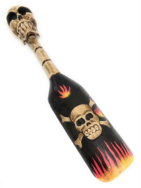 Here is a skull & bones paddle/oar with flames featuring a hand carved skull and hand painted. This cross bones paddle will be a great addition to your bad boy theme room.