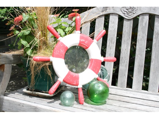Here is a hand carved and hand painted sail boat wheel the nautical way! The finish is rustic and will add a nice touch of coastal decor!