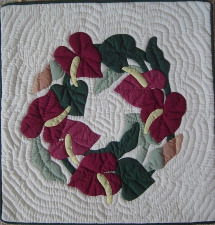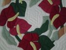 18" Anthirium Round Quilted Pillow Slip. Hawaiian Hand Quilted Pillow Cover. Tropical Decor