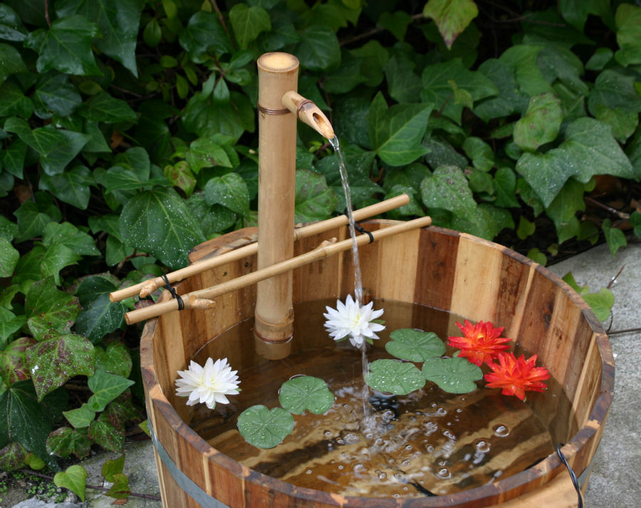 The simple, versatile design of our bamboo water spouts can transform any container into a tropical water garden. Just add our spout and pump kit to any container and you have a water fountain. Adorn the fountain with slate, river rock, lily pads, lucky bamboo or anything you fancy... The process of creation is both fun and rewarding.