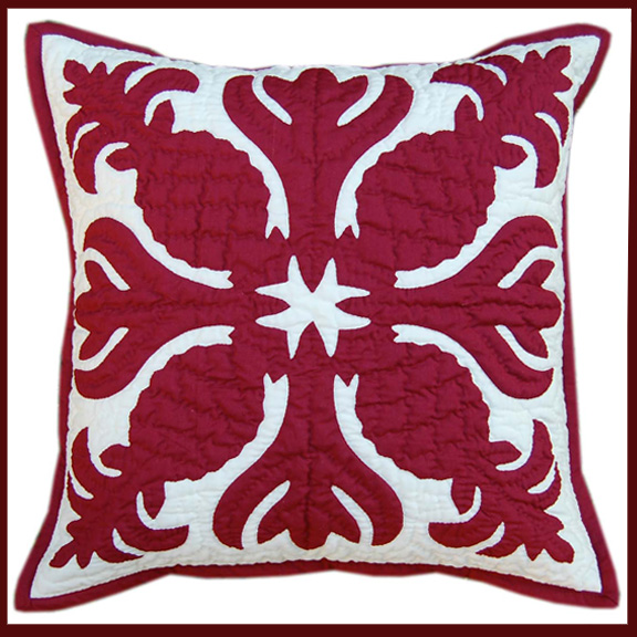18" x 18" Burgundy on Off-White PINEAPPLE DESIGN Hawaiian Hand Quilted Pillowslip.