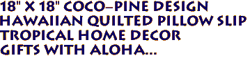 18" x 18" COCO-PINE Design. Hawaiian Quilted Pillow Slip. Tropical Home Decor. Gifts with Aloha...