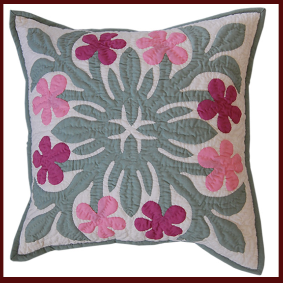 18" x 18" PINK PLUMERIAS Design. Hawaiian Quilted Pillow Slip. Tropical Home Decor. Gifts with Aloha...