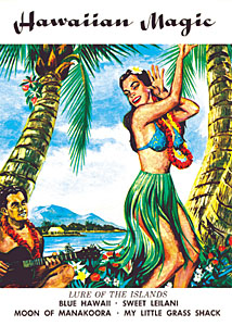 This is a vintage Hawaiian Sheet Music Cover (ca. 1946) entitled HAWAIIAN MAGIC. A very vibrant and romantic composition with strong primary colors to compliment any decor scheme.