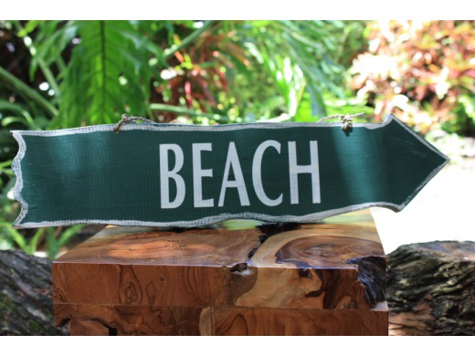 Here is a hand made vintage looking sign with the wording "BEACH". It has been hand carved and hand painted on a piece of driftwood.