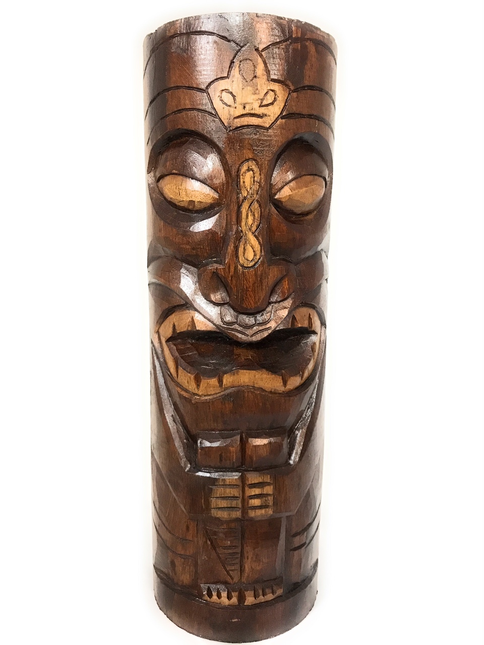 This Tiki pole measures 20" X 7" tall and is made of Albesia wood.