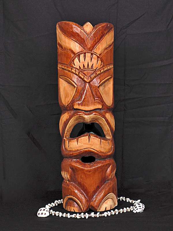 This artfully crafted tiki mask would be perfect for a Hawaiian or tropical decor theme. It would definately appeal to a Hawaiiana collector or anyone interested in oceanic art.