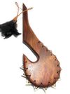 Here is a Koa Hawaiian Shark Tooth fish hook club (most popular design) made of KOA. This beautiful piece of art is 19" long and 7 inches wide. There are a total of 13 authentic tiger shark teeth, the wood used for this specific item is Hawaiian koa. Great addition to any collection from the South Pacific or simply for your home decoration!