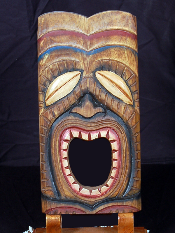 This is an artfully crafted Hawaiian OCEAN tiki mask. It has been hand carved and hand painted with great attention to detail.