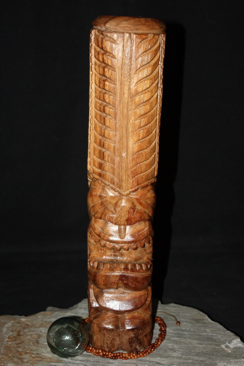 Here is a hand carved Tiki depicting Lono, Tiki of Love. This Tiki totem was hand carved with great attention to details and hand rubbed to give a beautiful finish.