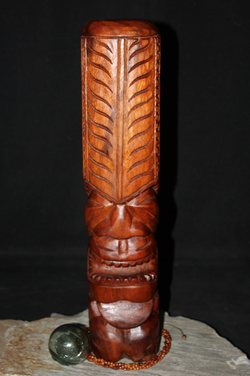 Here is a hand carved Tiki depicting Lono, Tiki of Love. This Tiki totem was hand carved with great attention to details and hand rubbed to give a beautiful finish.