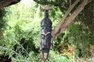 This primitive NATIVE CHIEF Tiki features very intricate details; the design was enhanced by applying eggshells then varnished. It is standing 20 inches tall.