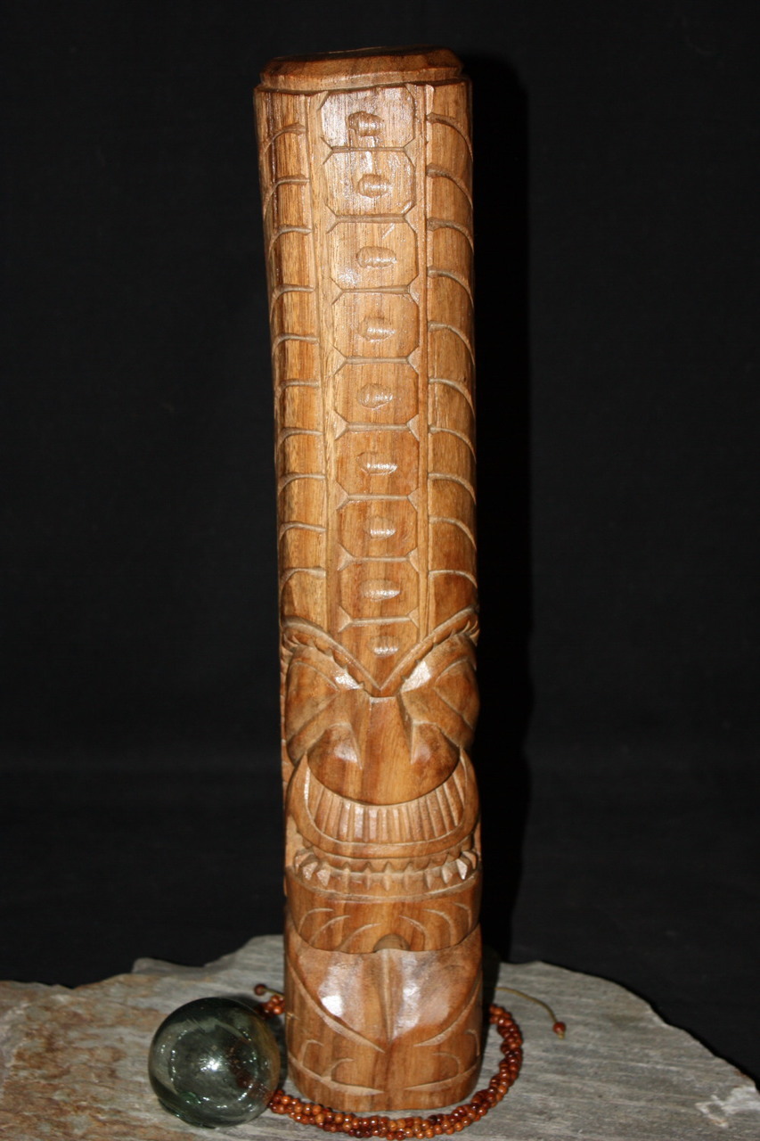 Here is a hand carved Tiki depicting Kanaloa, Tiki God of the Ocean. This Tiki totem was hand carved with great attention to details and hand rubbed to give a beautiful finish.