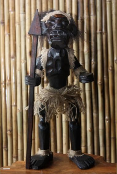 Here is a primitive Tiki WARRIOR Chief ready to kick some "Okole" (in Hawaiian). This Tiki measures 20 inches (30cm) tall. He certainly looks very intimidating with his spear and would make a great conversation piece!