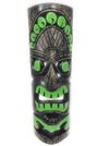 Details about the mask: Weight: 2 lbs., Height: 20”, Width: 6”, This jungle green tribal mask was carefully hand crafted and painted by an experienced carver. Note the beautiful burnt, antique finish. It would be excellent as wall decor and a great addition to a tropical, island decor theme. Note the intricate carved detail of the wood and attention to color on the mask.