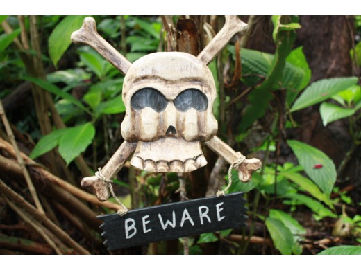 This is an artfully crafted Hawaiian Cross Bones Skull Mask and BEWARE tiki Sign. It has been hand carved with great attention to detail.
