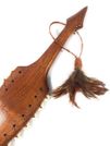 Here is a Koa Hawaiian Shark Tooth Dagger made of KOA with a diamond shaped tip. This beautiful piece of art is 18" long and 6.5 inches wide. There are a total of 16 authentic bull shark teeth, the wood used for this specific item is koa (premium curly).
