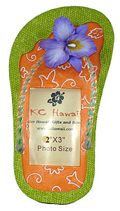 This artfully crafted, hawaiian inspired foto frame features a local slipper (known as "slippahs" in the islands...) with a orchid flower.