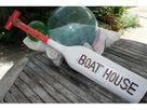 Here is a nautical paddle/oar featuring the wording "Boat House". The paddle has been hand carved and hand painted.