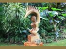 Here is a beautiful tiki figure measuring 32 inches, made out of solid Acacia Koa wood also known as Monkey Pod Wood.