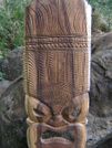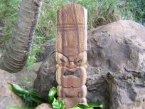 This Tiki mask KU is the tiki god of STRENGTH and HEALING. It is 36" tall and 10" wide, carved of premium Acacia wood (also known as Monkey Pod), giving it a natural brown and beige color. This Tiki mask has been stained to a rich brown color, then hand rubbed with oil to give a beautiful finish and smooth patina.