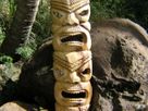 This is a beautiful, thick, Tiki mask made from premium Acacia wood. It has been hand sculptured with great attention to details. In Hawaiian culture it is the symbol of LOVE and PROSPERITY. Carving this type of mask is actually more involved than a totem; the log has to be completely carved out. The mask measures 40" by 10". This mask has been hand rubbed and finish with oil to give a beautiful finish and smooth patina.