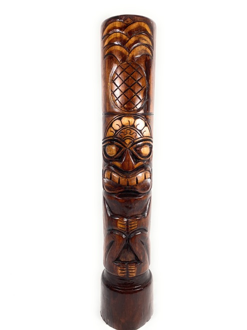 This is a hand carved Tiki Totem, depicting KANALOA, Tiki God of the ocean, fishing and abundance. This Tiki sculpture measures 40inches tall. Made of premium Albesia Wood, and hand waxed and painted to give it an antique finish and smooth patina.