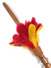 This beautiful piece of art is over 24" long, there are a total of 8 authentic tiger shark teeth, the wood used for this specific item is Koa and has woven loops of fibers also called olona (a Hawaiian shrub, the bark of which was valued as a source of strong, durable fiber). The spear can either be hung or mounted. Please note that the feathers arrangement may vary slightly".