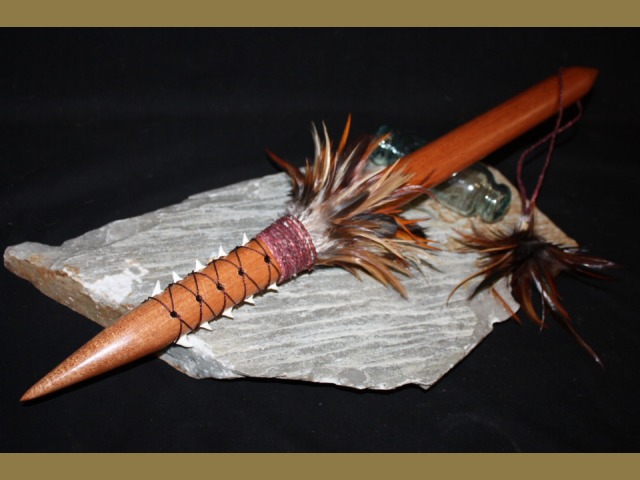 Here is an intimidating Hawaiian spear made out Koa Wood with Shark teeth also known as pahoa i a me lei-o-mano.