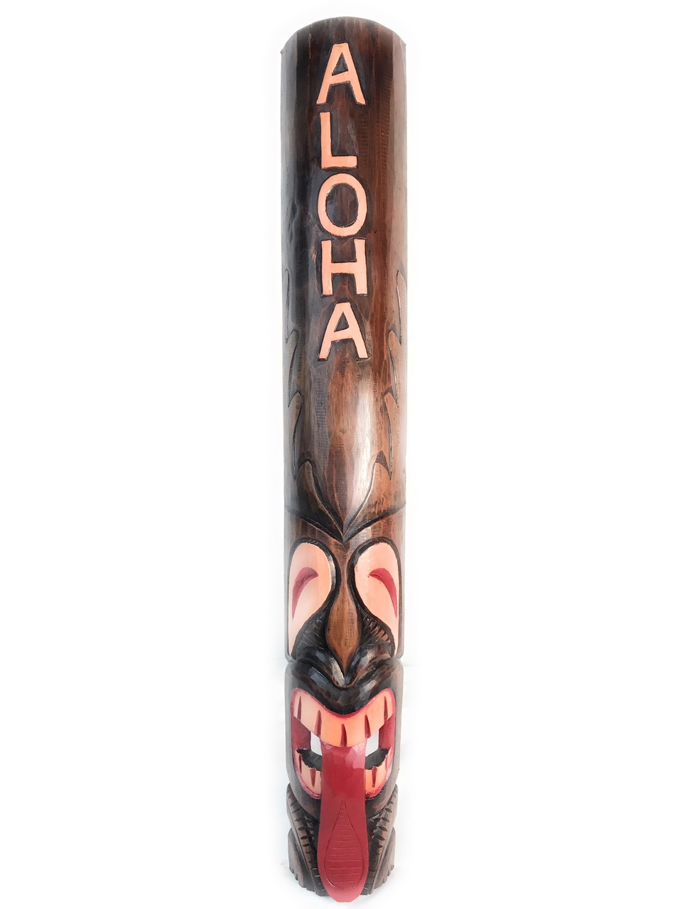 Here is a hand carved Tiki mask and hand painted with "Aloha". This Tiki mask depicts Hina (sunrise tiki).