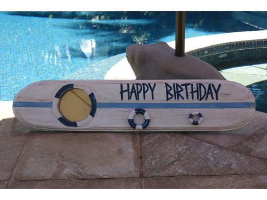 Here is a hand made vintage looking Tiki sign with the wording "HAPPY BIRTHDAY" painted in bright colors on it. Each letter is hand carved and raised. The sign also features a built in photo frame for your favorite person!