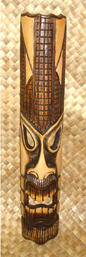 This artfully sculpted tribal mask has been hand carved by an experienced carver and great attention has been paid to color and detail. It would be excellent as wall decor to add to a tropical, island decor theme. Also perfect for your patio, tiki bar or luau.