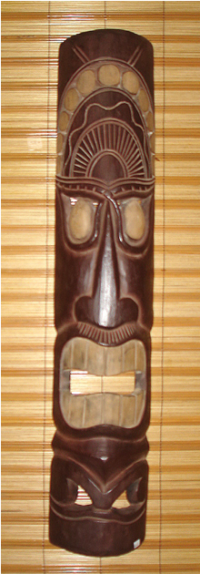 This artfully sculpted Tahitian tribal mask has been hand carved by an experienced carver and great attention has been paid to color and detail. It would be excellent as wall decor to add to a tropical, island decor theme. Also perfect for your patio, tiki bar or luau.