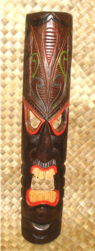 This artfully sculpted Tahitian tribal mask has been hand carved by an experienced carver and great attention has been paid to color and detail. It would be excellent as wall decor to add to a tropical, island decor theme. Also perfect for your patio, tiki bar or luau.