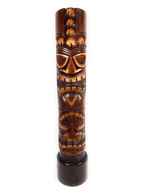 Here is a hand carved and hand painted Tiki totem with a beautiful antique finish.