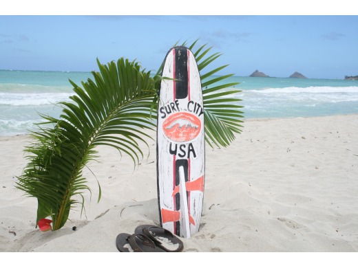 Here is a hand made vintage looking Tiki sign with the wording "SURF CITY USA" painted in bright colors on it. Each letter of Kailua Beach is hand carved and raised. This great piece of handicraft measures 40 inches long by 9 inches wide (100 cm X 24cm).