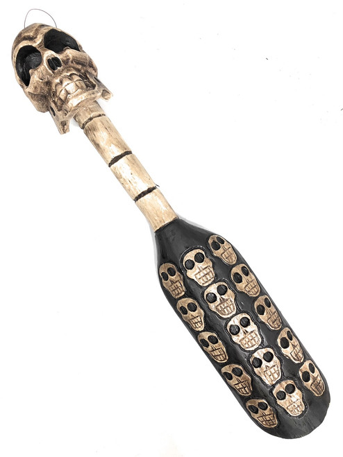 This artfully sculpted skull paddle has been hand carved by an experienced carver and great attention has been paid to color and detail. It would be excellent as wall decor to add to a tropical, island decor theme. Also perfect for your patio, tiki bar or luau.