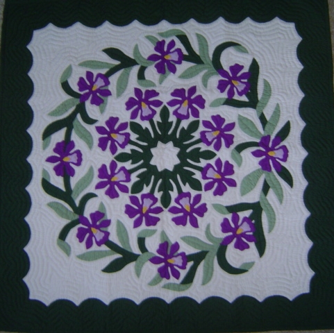 Each wall hanging is hand quilted by Master Quilters taught in the traditional Hawaiian style of quilting. Each Quilt has over 250,000 stitches and average 6-8 stitches per inch. We appliqué the design using the hidden or "blind" stitch onto the background material. It is then quilted with a ripple or echo pattern. Every piece is hand made with great care to insure your total satisfaction. Please contact us for availability and special orders (at NO EXTRA COST!).