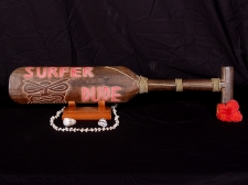 This is an artfully designed Tiki paddle that was hand carved and painted with great attention to details. It has the wording SURFER DUDE on the blade. The braided line around the handle adds to the yachting theme.