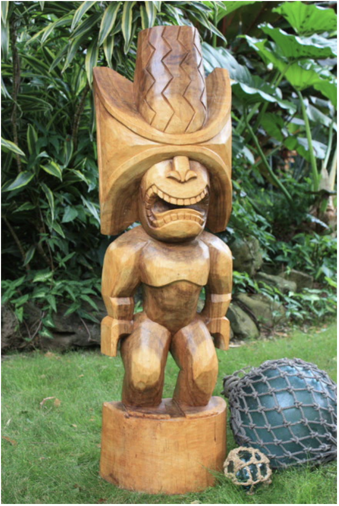 Tiki Ku kona style - natural version! Here is a beautiful tiki KU measuring 48 inches, made out of solid monkey pod wood, hand polished and stained in Hawaii. KU is known as the Tiki of strength, warrior and sunrise.