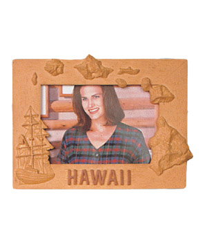 This artfully crafted, island inspired foto frame features a chart of the Hawaiian Islands and a classic square rigger ship. It has the wording HAWAII engraved across the bottom of the frame.
