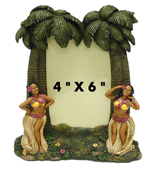 This is a colorful, island inspired foto frame featuring palm trees and dancing hula girls with swaying grass skirts.