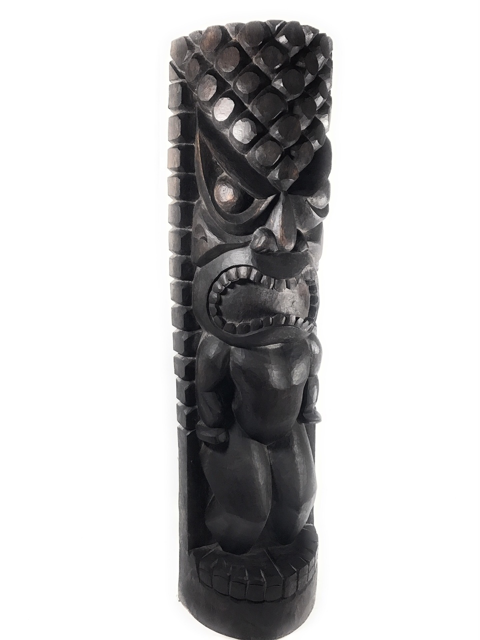 It would be perfect wall art (the back is flat) for a tropical decorating theme or as a post to add some drama to your tiki bar or luau. A beautiful piece of Hawaiiana and Oceanic Art. Perfect for INDOOR or OUTDOOR Garden decor/yard art. Place this impressive statue by you front door to greet your guests and to protect your home with it's POWERFUL PRESENCE.