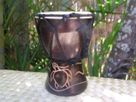 Here is a brand new, primitive looking drum. The bottom has hand carved hawaiian turtles (honu) as petroglyph all around it, made out of wood. The drum measures 5 inches tall.